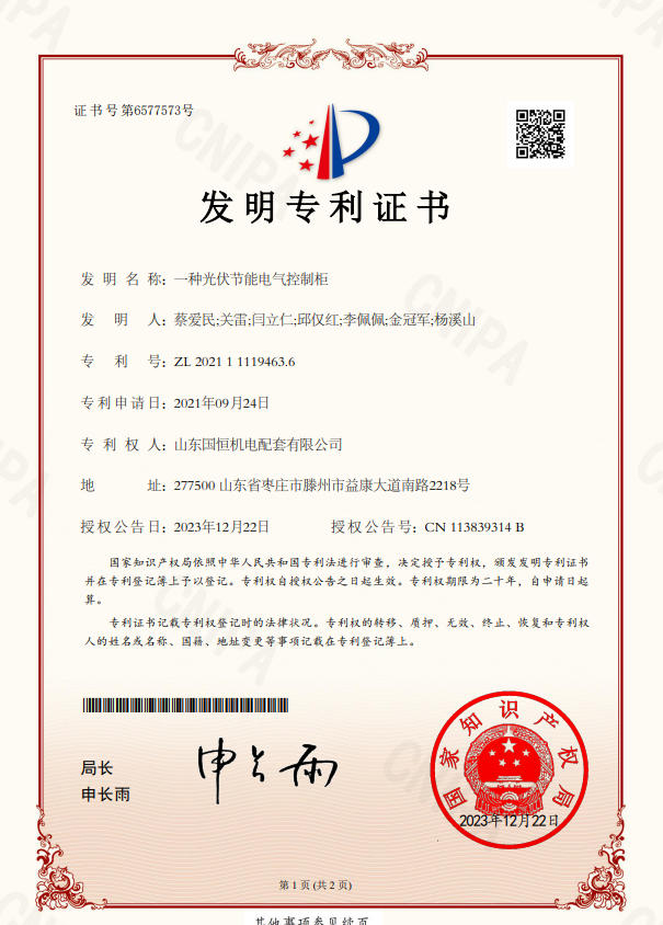 山東國恒機電配套有限公司簡 介 山東國恒機電配套有限公司是一家集新能源、高科技、智能化生產研發(fā)、制造、銷售為一體的綜合性現代化高新技術企業(yè),公司座落在魯班故里、墨子之鄉(xiāng)滕州,公司始建于2005年,注冊資本1億元,擁有各類中、高級專業(yè)技術人員100余名。主營業(yè)務涉及高科技智能電力裝備、新能源儲備輸送,220kv及以下輸變電工程勘察設計、制造、銷售、安裝、售電和智能充電樁能效運維,并從事生產制造交直流充電樁設備、成套開關設備、各型號高低壓開關柜、箱式變電站等電氣設備,是棗莊地區(qū)唯一一家國資入股的新能源高端品牌企業(yè)。公司擁有獨立…